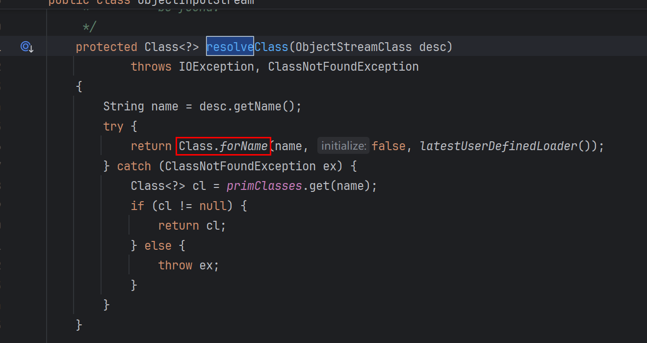 反序列化过程中会涉及到resolveClass(),在这儿有不同