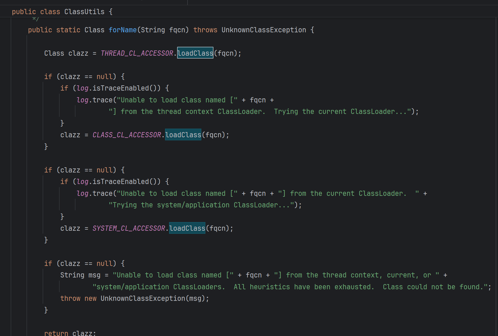 由注释可知它是现有的类加载器,当前类的(即 ClassUtils 类)类加载器,一系统类加载器,加载jdk里面的,是加载不到CC依赖的