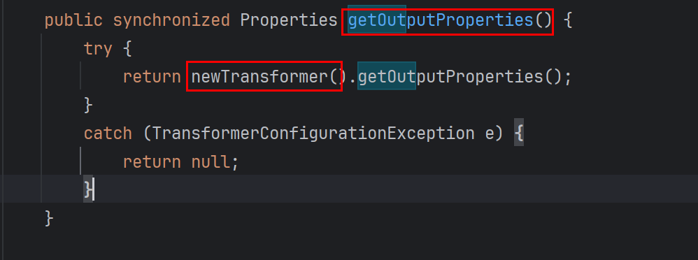 getOutputProperties是符合javaBean格式的,它还调了newTransformer刚刚好可以接上之前的利用链