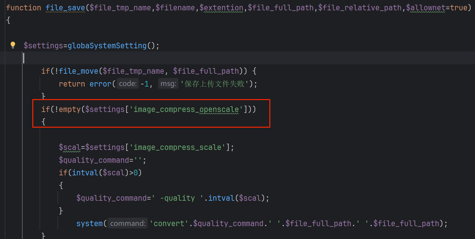 2.在危险方法里面需要满足$settings[‘image_compress_openscale’]不为空