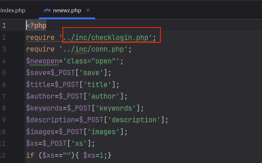 找到鉴权文件admin.php,session验证,并且我们数据包是无法干扰的,所以思路就是找遗漏的,为引用admin.php的文件