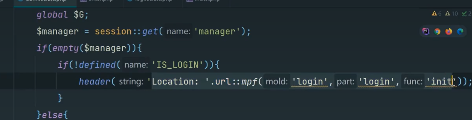 1.找出鉴权文件:定位首页文件分析,admin为鉴权