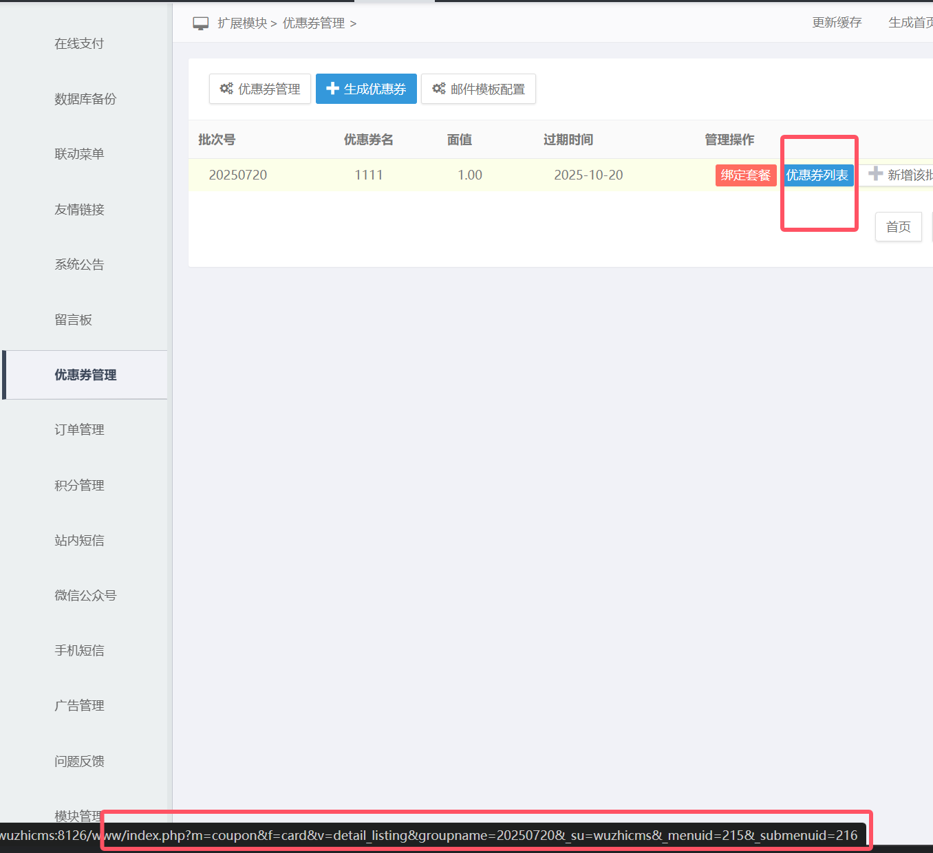 这里对应的功能点是要生成一个优惠劵,在优惠卷列表这里