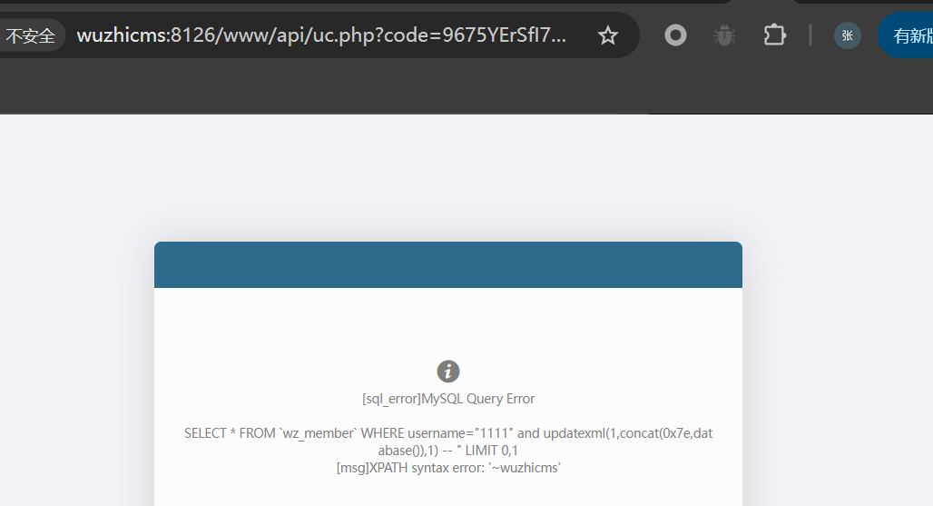 \phpstudy_pro\WWW\wuzhicms-4.1.0\www\api\uc.php 但是访问这个接口返回 Invalid Request,在后面参考文章知道也是可以利用的