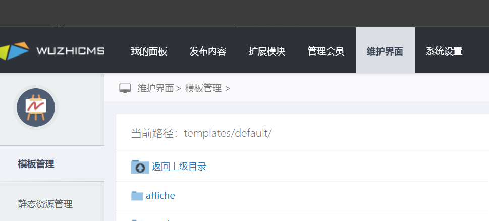 直接访问/www/index.php?m=attachment&f=index&_su=wuzhicms&v=ueditor