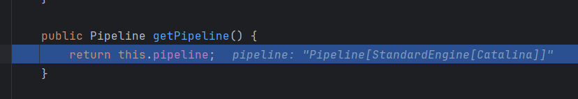 返回一个 Pipeline 类对象,所以 standradContext.getPipeline 获取 StandardPipeline