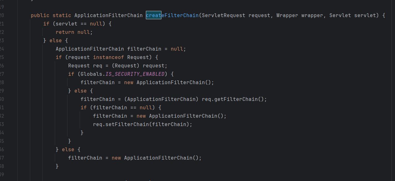 filterChain = ApplicationFilterFactory.createFilterChain(request, wrapper, servlet);
