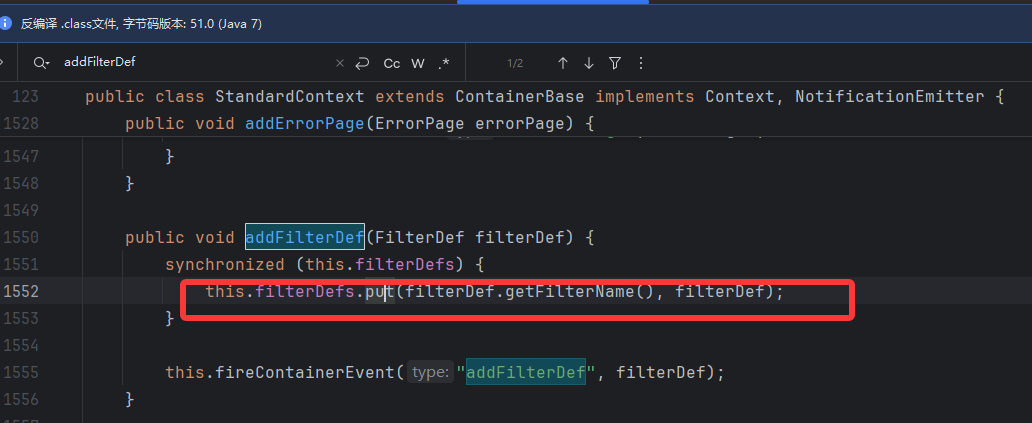 找到 filterStart 方法中 put filterConfig 进行赋值,filterConfig 是一个 ApplicationFilterConfig 实例,所以反射创建 filterConfig,再调用方法把它 put 进 Context 中就好了
