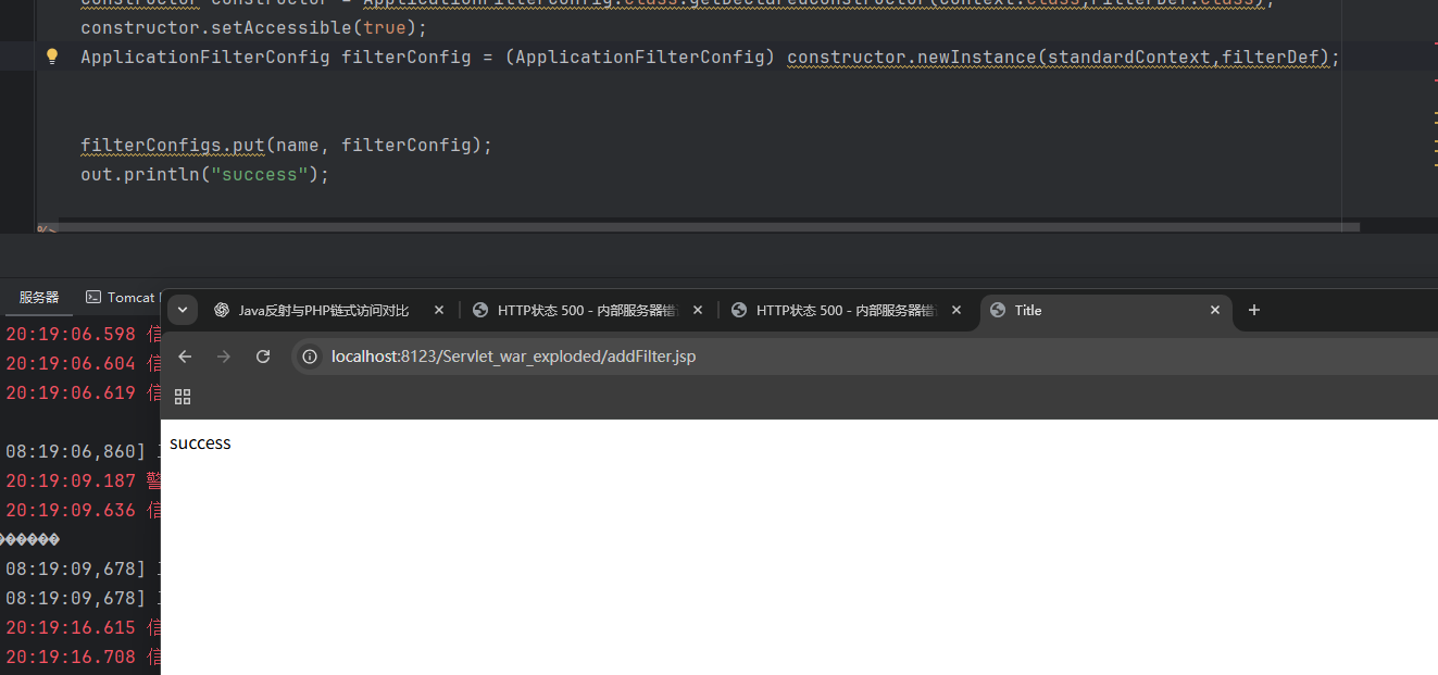 访问 jsp 文件。成功将 filter 注册到 context 中