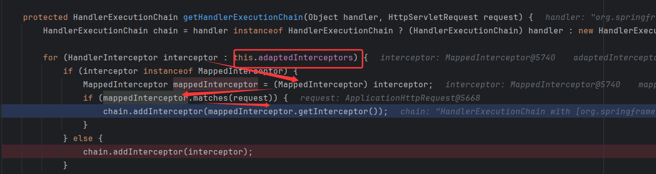 interceptor 是从 AbstractHandlerMpping 的 adaptedInterceptors 属性中获得的